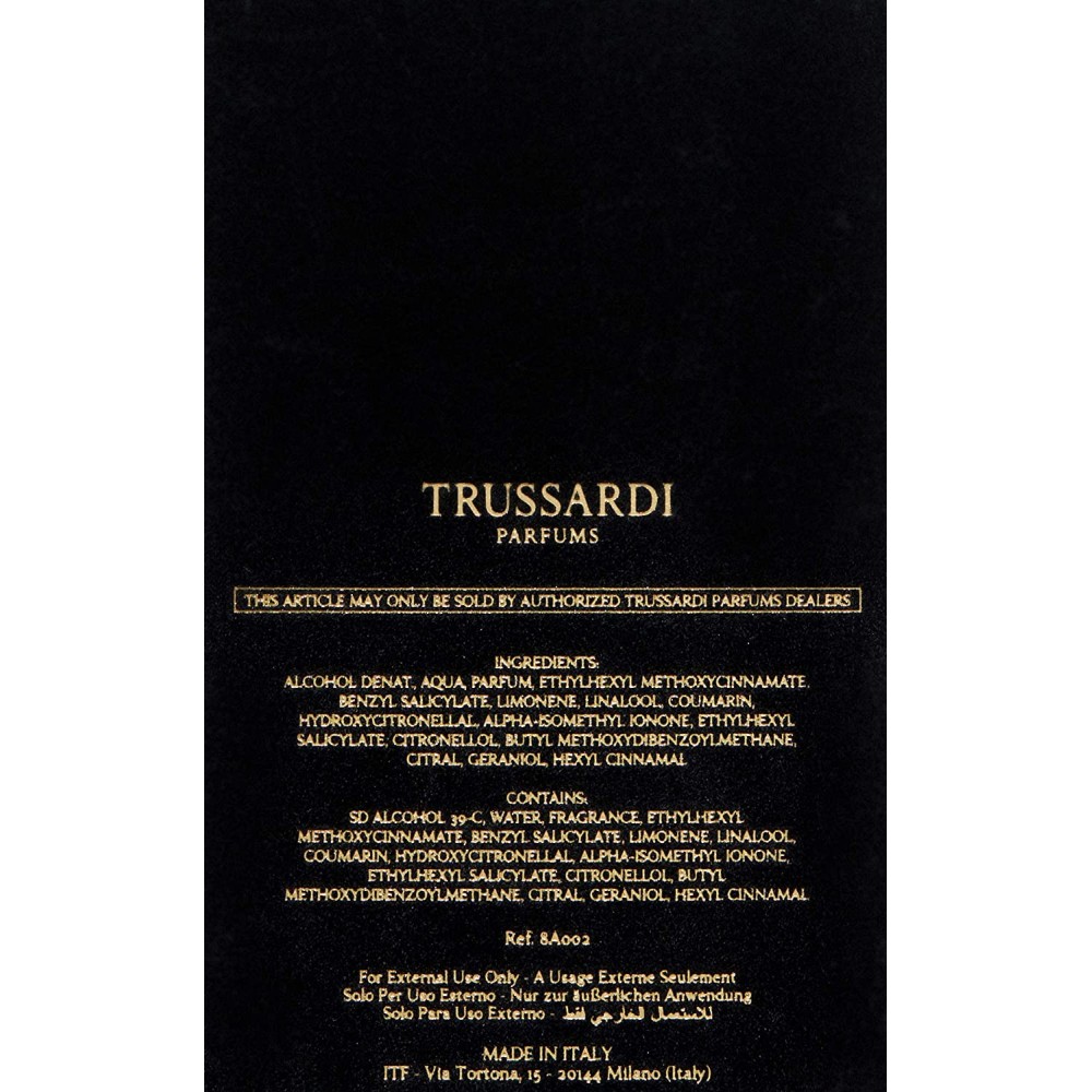 Новото ухание „събира всички основни ценности на марката Trussardi„…. „и привлича, и печели като ново ароматно оръжие за прелъстяване„, споделят от дизайнерската къща.